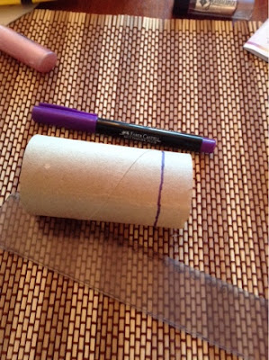 Usando nuevamente los trozos restantes de rollos, vamos a cortar por uno de los extremos, y pintamos todo de rosado